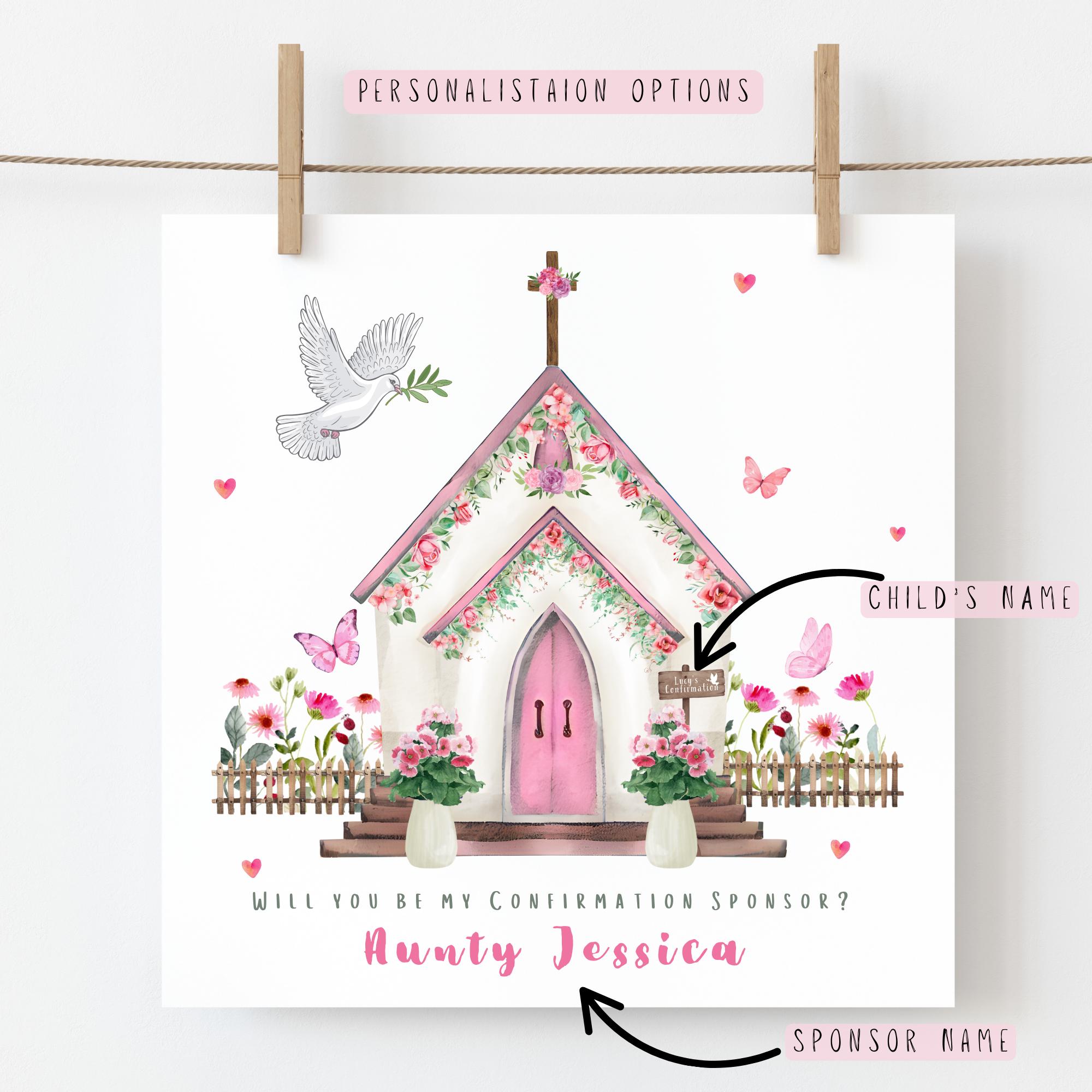 A “Will you be my Confirmation Sponsor?” card, this personalised Catholic sponsor proposal card features a delicate watercolour floral church illustration in soft blue tones, thoughtfully designed to ask a special person to take on an important role in a Confirmation journey. Created to mark a meaningful faith milestone, this sponsor proposal card is a keepsake to be treasured long after the day has passed.