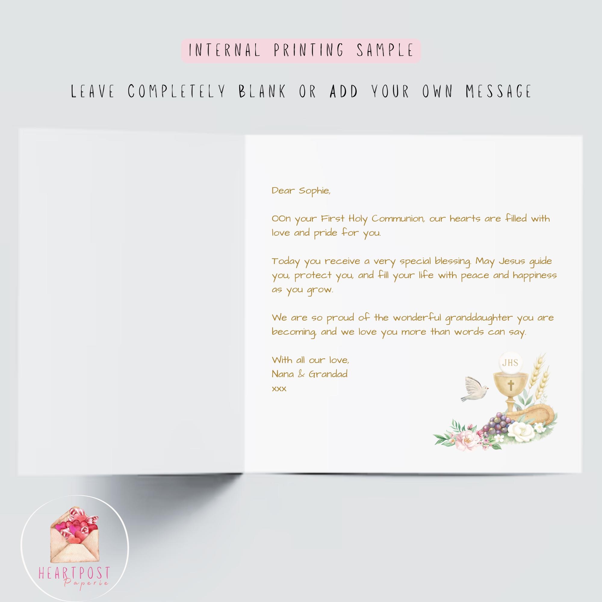 • Personalised First Holy Communion card for granddaughter