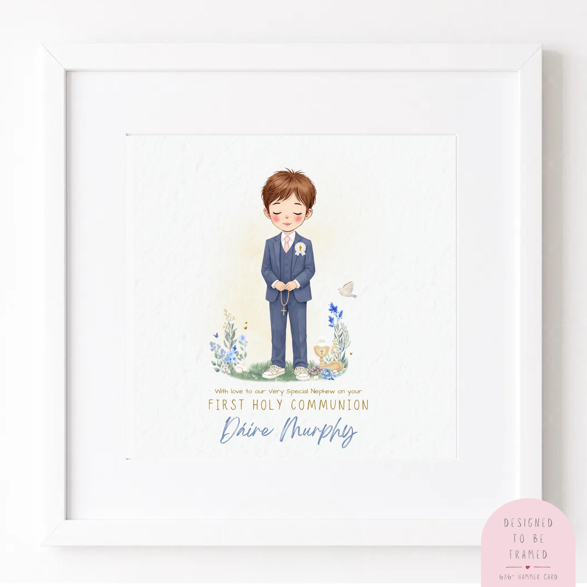 Celebrate your nephew’s First Holy Communion with a beautifully illustrated personalised keepsake card, thoughtfully created from Aunt and Uncle to mark this special milestone in his faith journey.