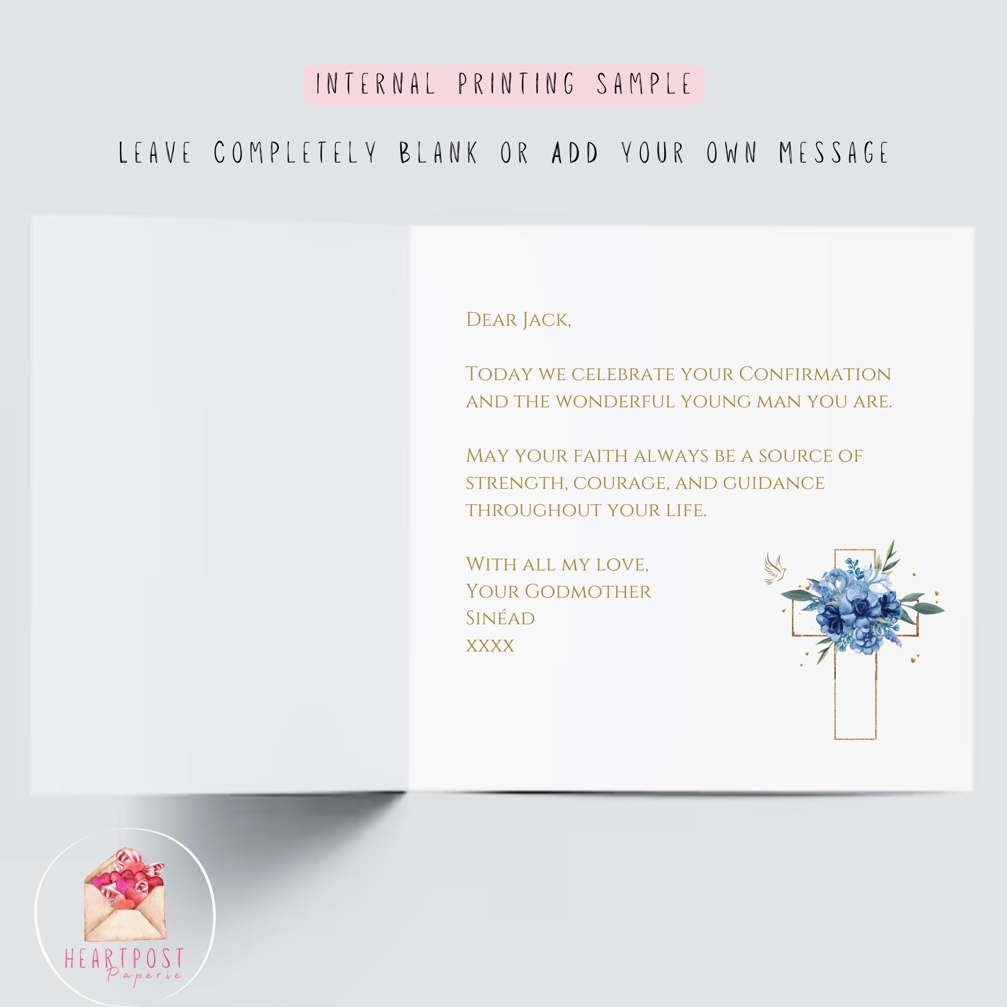 This handmade Catholic Confirmation keepsake card can be personalised with your godson’s name, Confirmation date, and church name, creating a truly special and meaningful card that honours his Confirmation Day and faith journey. Professionally printed on luxury hammered cardstock, it is designed to be cherished for years to come.