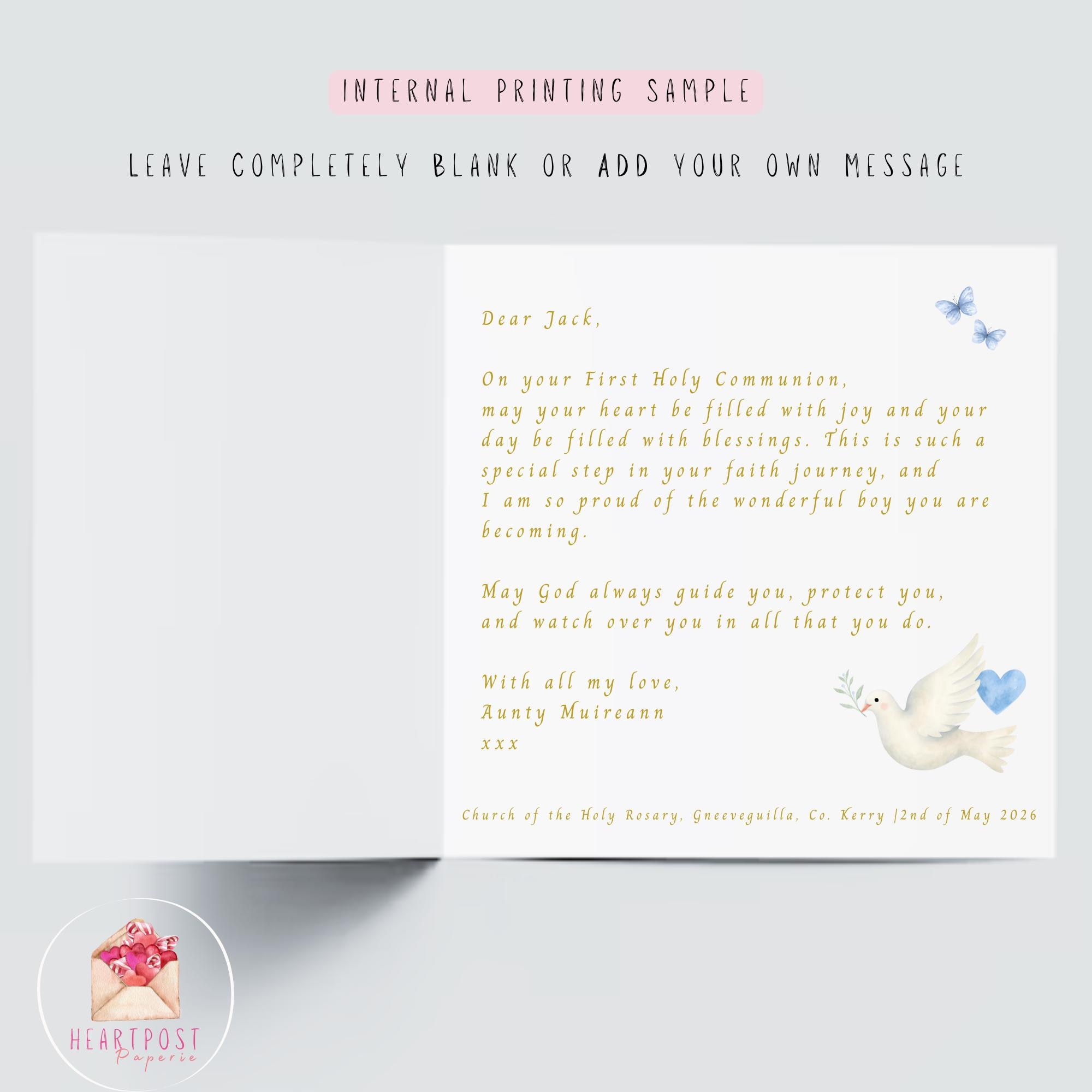 • Personalised First Holy Communion card for a nephew