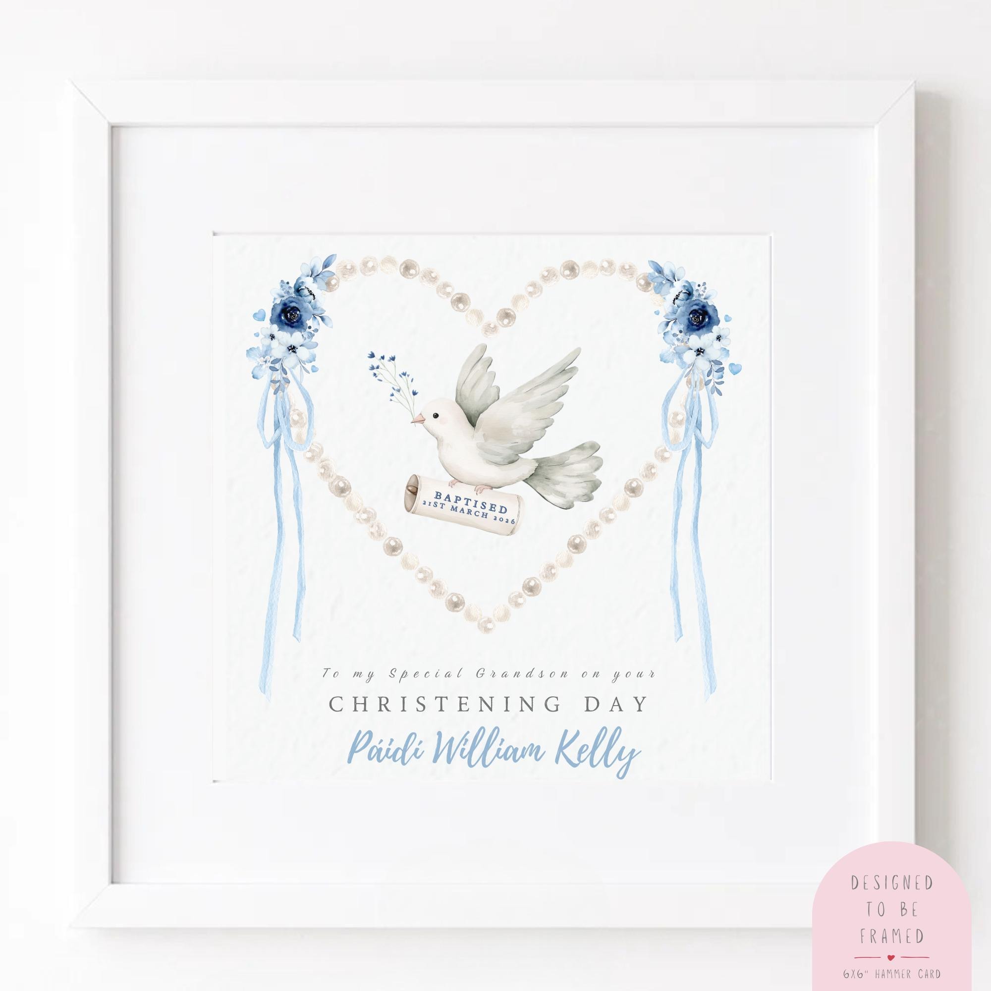 Christening Card for Grandson Personalised Dove Heart Keepsake