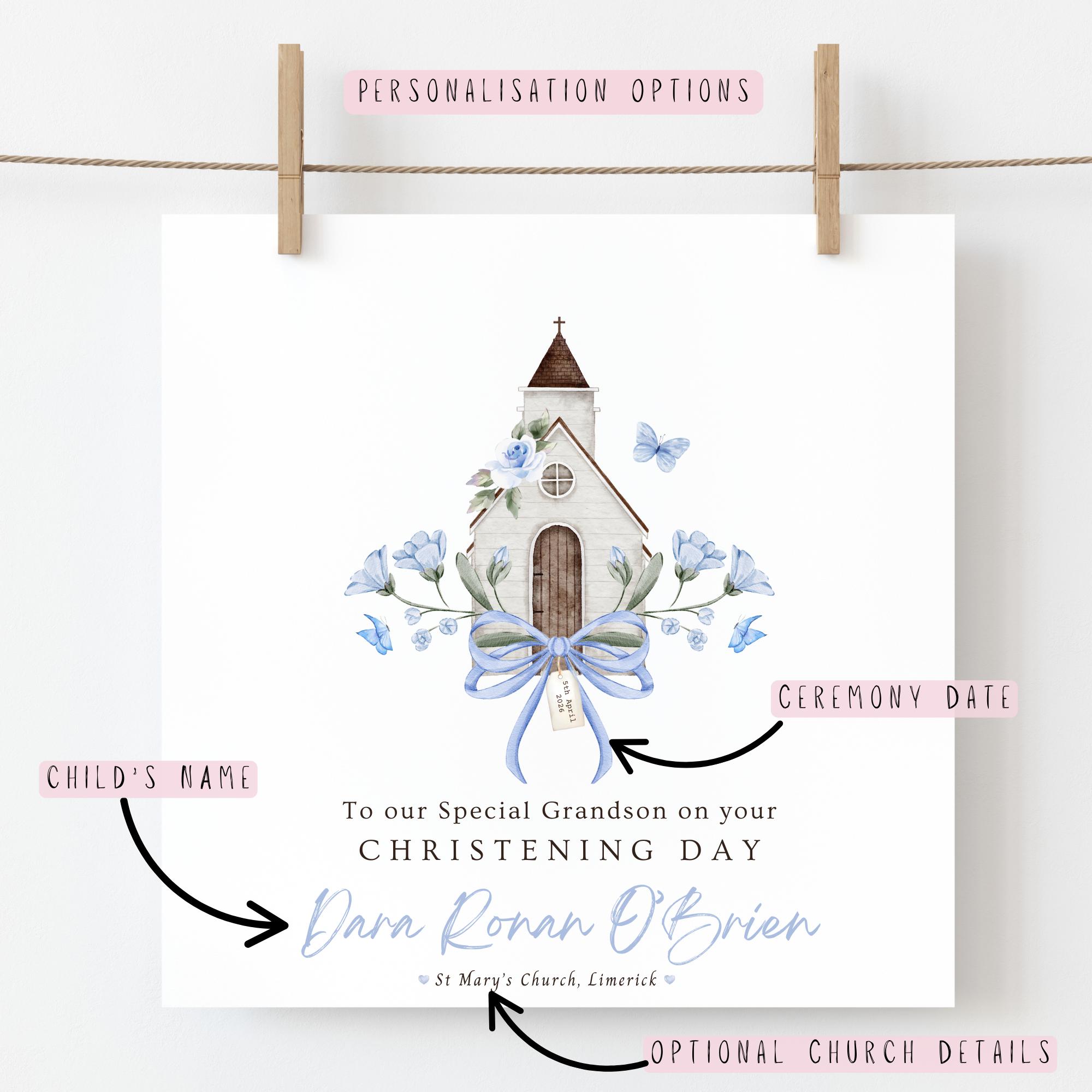Your personalised grandson Christening card can include: