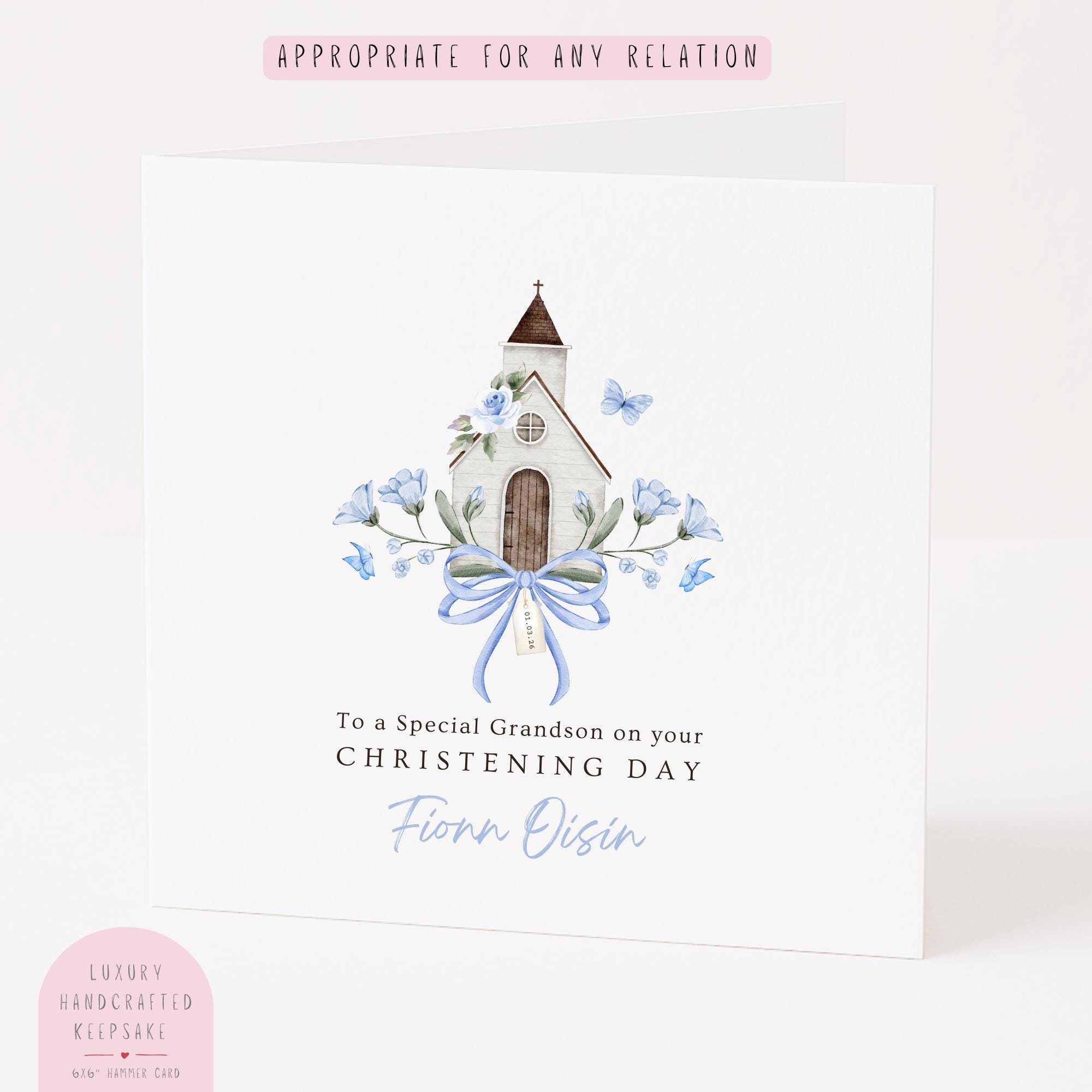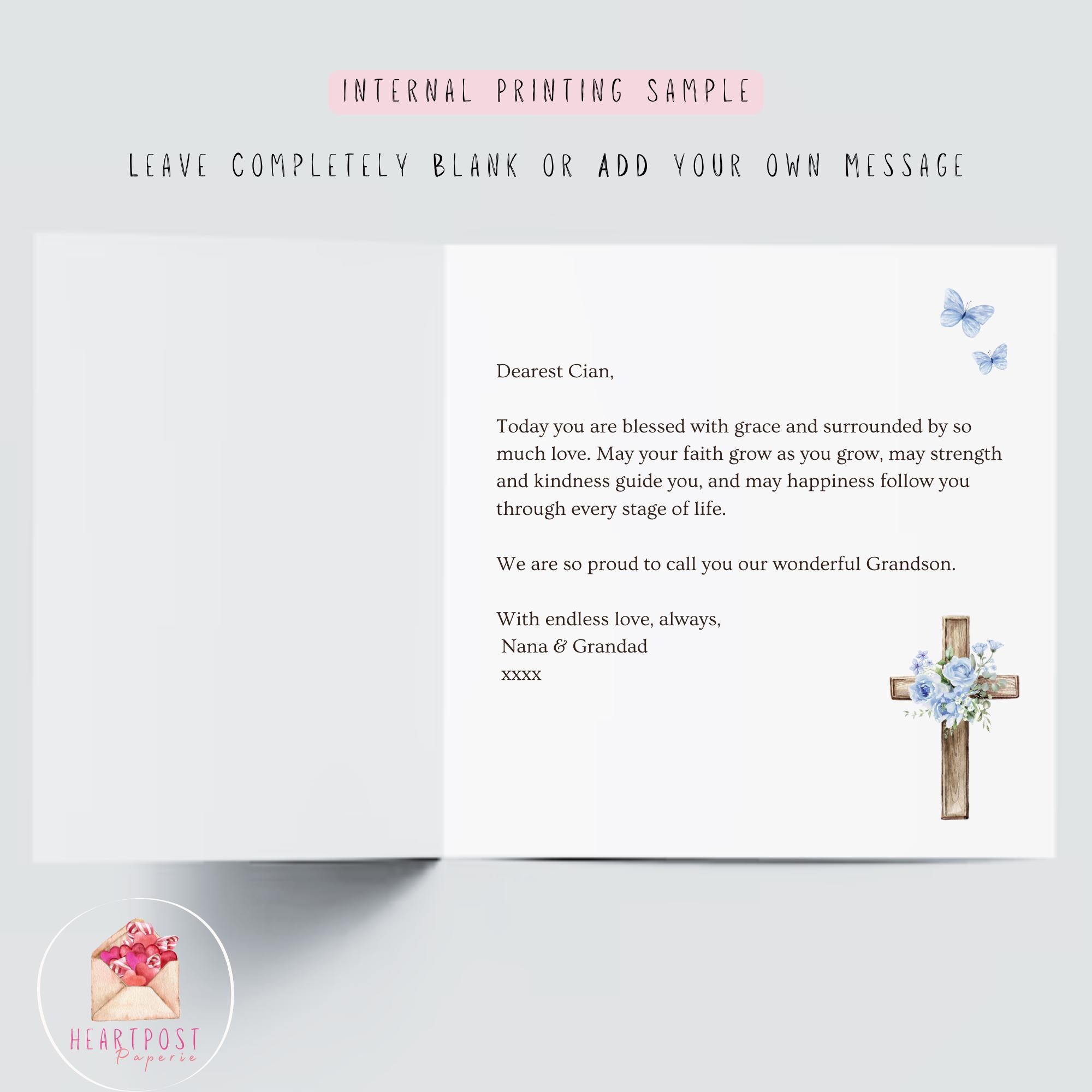 Whether you are attending his Christening, Baptism or Naming Ceremony, this personalised religious card from grandparents is a beautiful way to share your pride and faith.