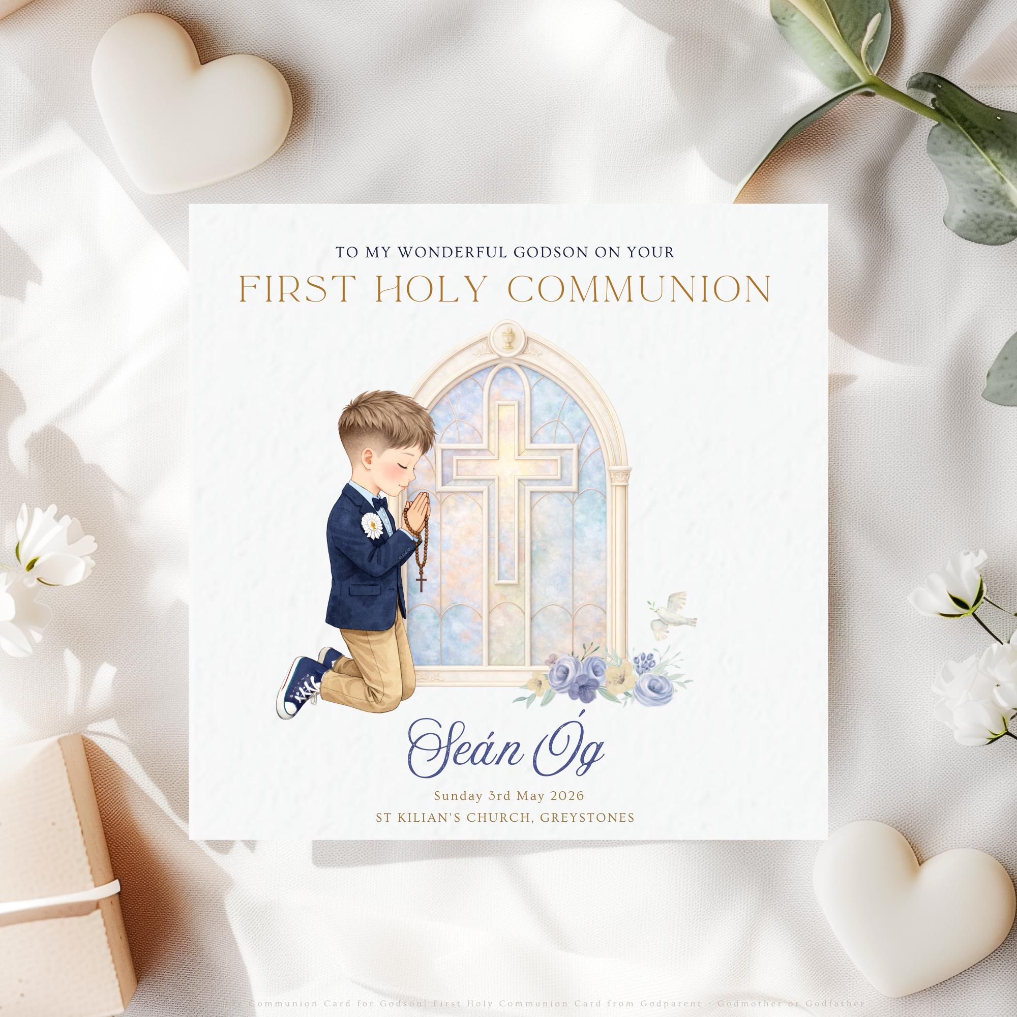• Personalised First Holy Communion card for godson