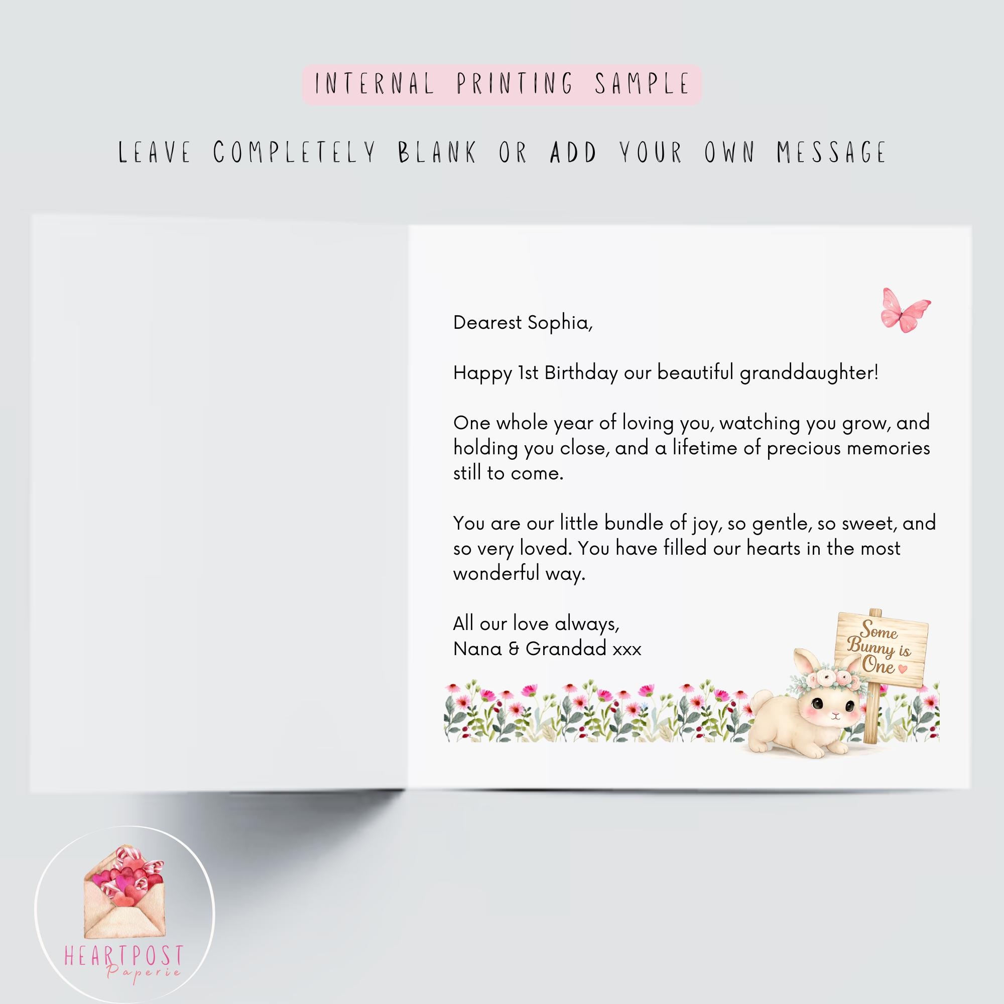 Personalised 1st Birthday Card for Granddaughter – Some Bunny is One Birthday Card – Cute Bunny Floral Keepsake Card