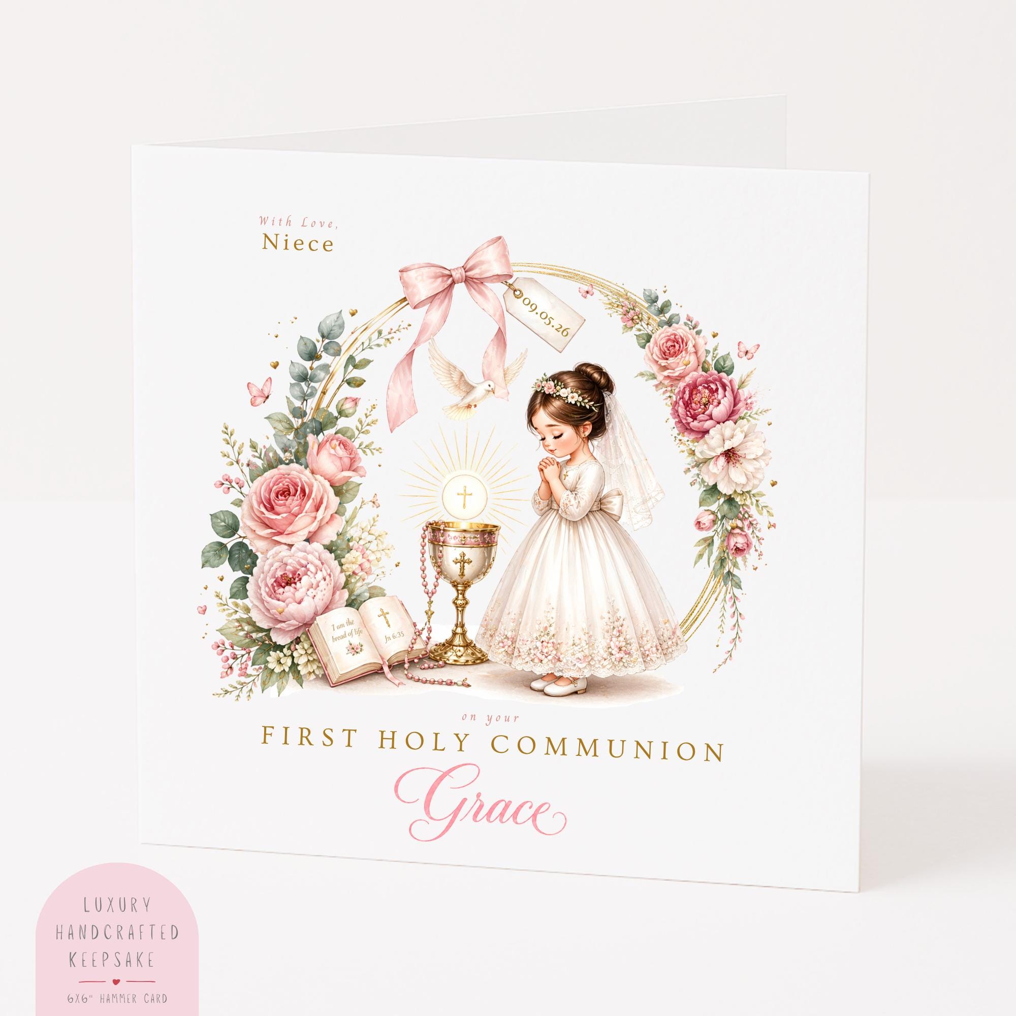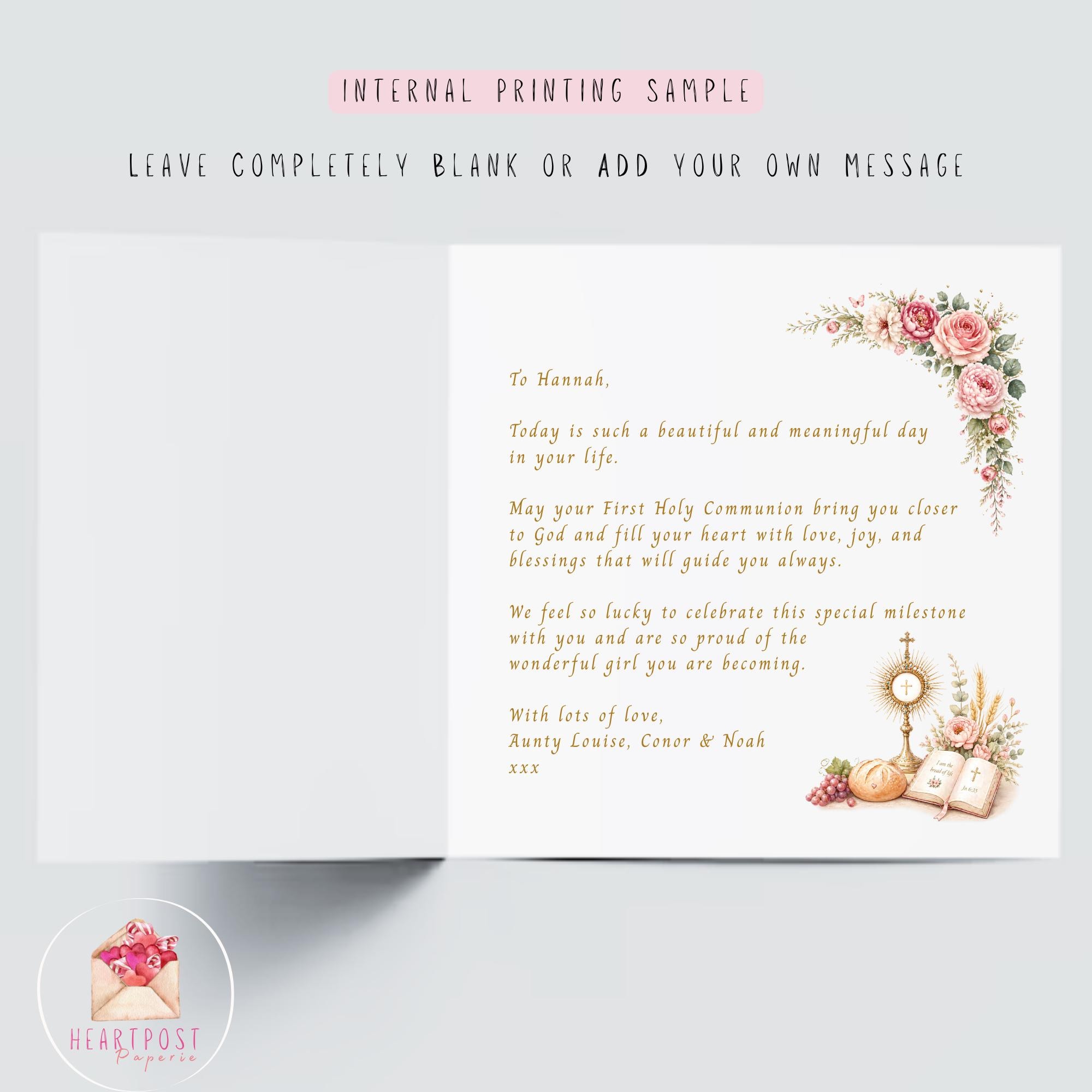 These options allow you to create a truly personal Catholic Communion keepsake card for your niece.